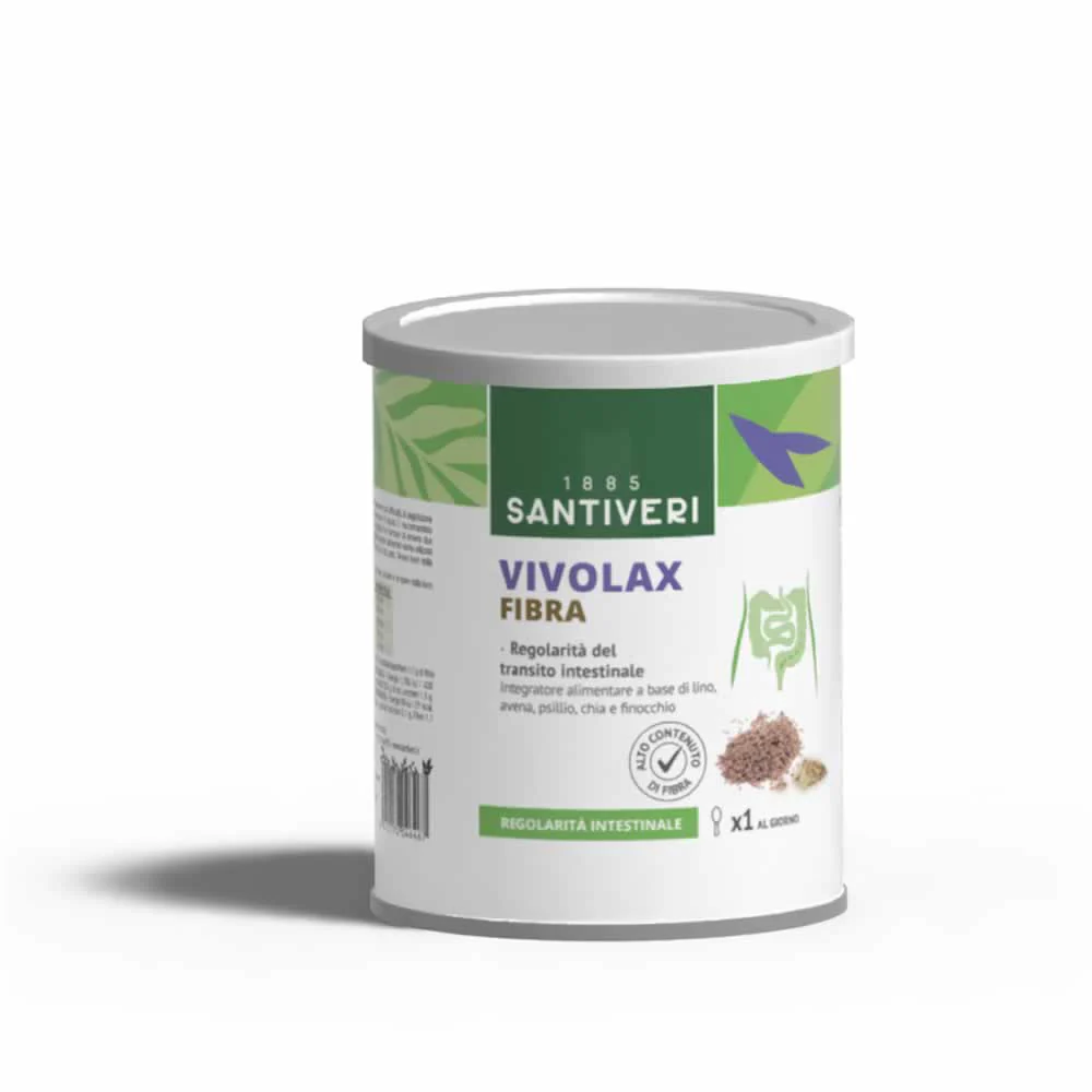 Vivolax Fibra è un integratore alimentare in polvere ricco di fibre naturali provenienti da semi di lino, crusca d’avena, psillio, chia e finocchio. Questa combinazione favorisce la regolarità intestinale e contribuisce al benessere digestivo, elementi chiave per un efficace controllo del peso. Aggiungi Vivolax Fibra alla tua routine quotidiana per supportare una digestione sana e sentirti più leggero e in forma.