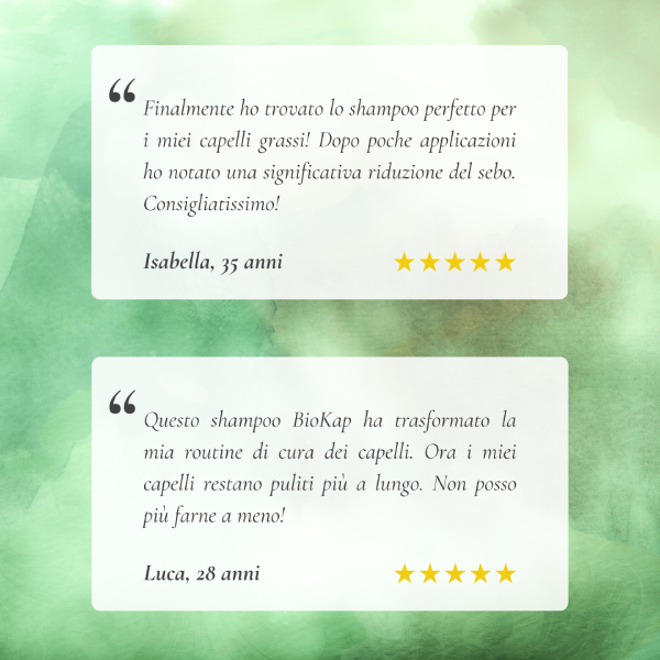 Non aspettare oltre! Migliora la salute dei tuoi capelli con lo Shampoo Capelli Grassi BioKap. Acquista ora e scopri la differenza di un prodotto naturale e di alta qualità.